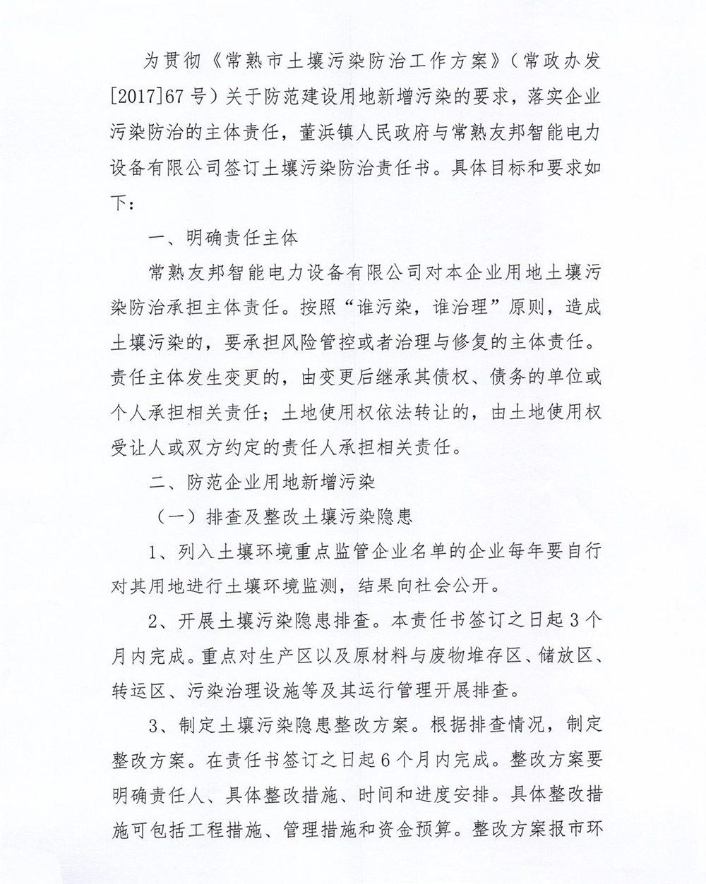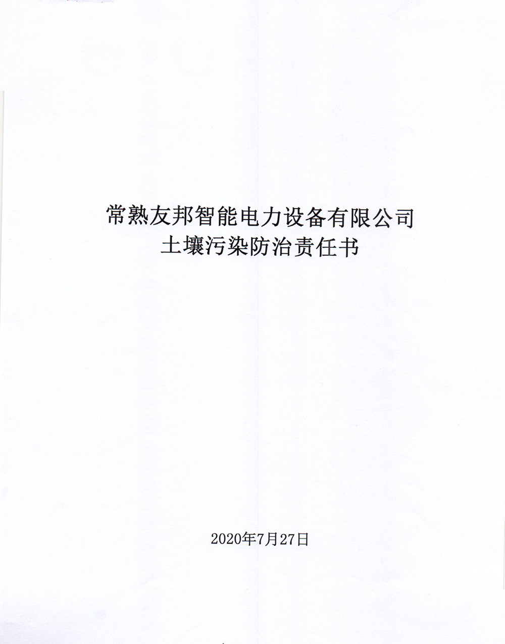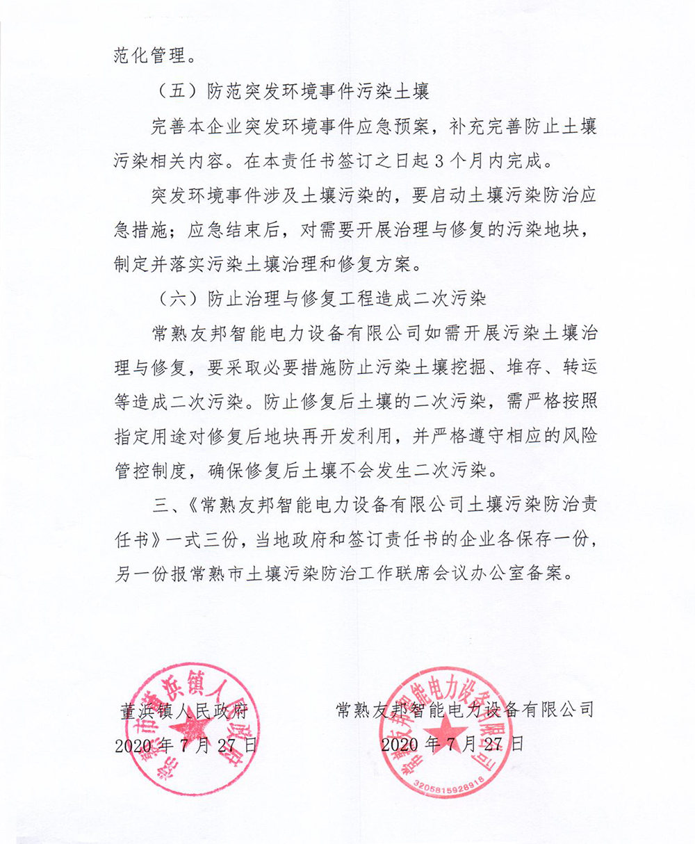常熟友邦智能電力設(shè)備有限公司 土壤污染防治責(zé)任書